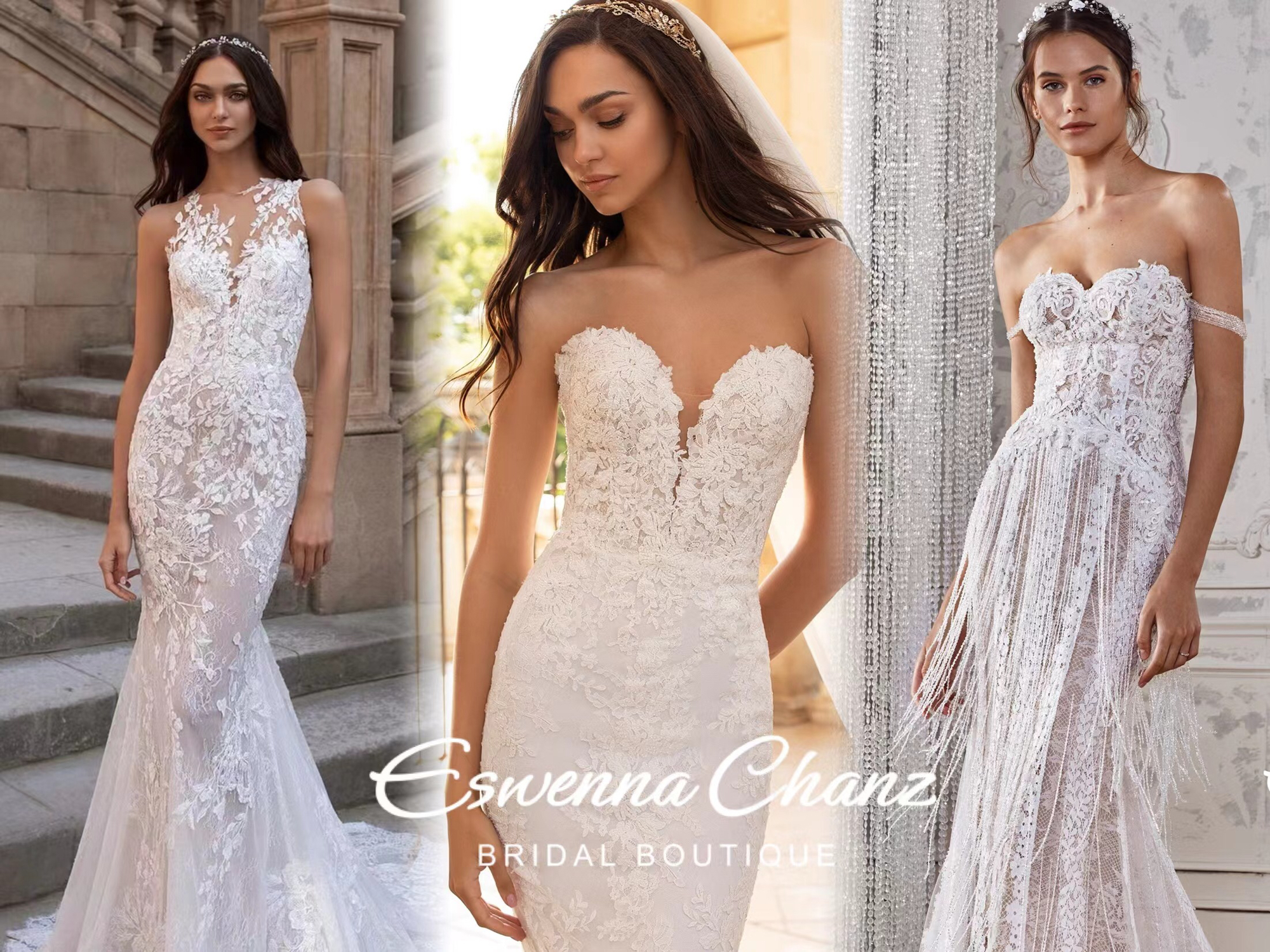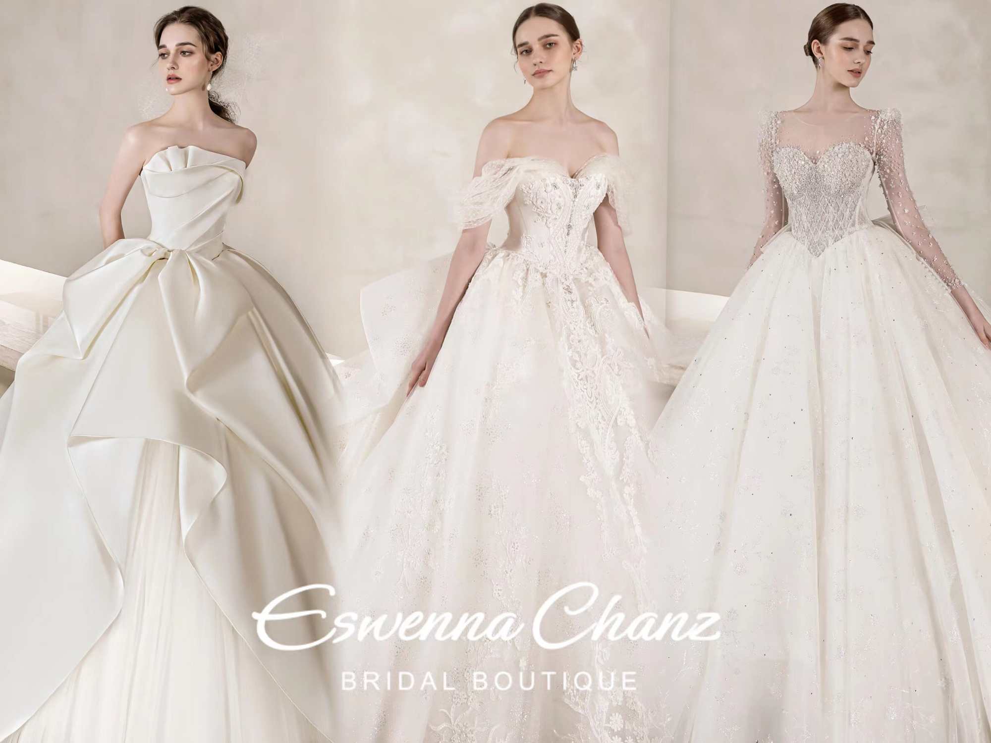 Eswenna Chanz 婚纱礼服定制 品牌创立于2016年,广州、珠海及美国洛杉矶都设有门店。 秉承卓越工艺传统,主营高级定制系列和国内外设计师品牌,主打时尚、轻盈、活泼的设计风格。产品系列从婚纱、礼服、裙褂、晨袍到配饰、婚鞋等,为新人提供一站式服务。